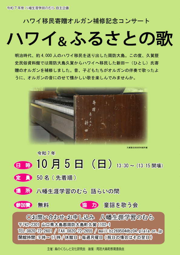 ハワイ移民寄贈オルガン修復記念コンサート「ハワイ&ふるさとの歌」開催