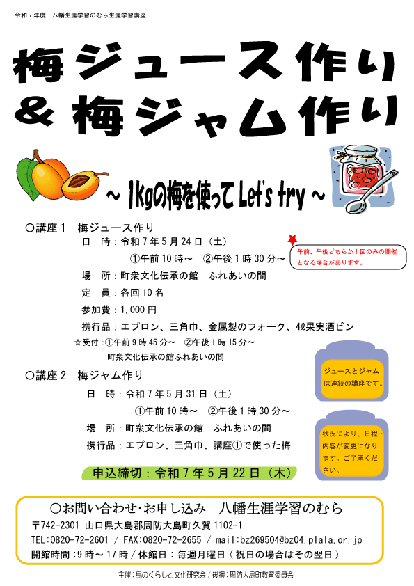 ■八幡生涯学習のむら 742-2301 山口県大島郡周防大島町大字久賀 1102-1
